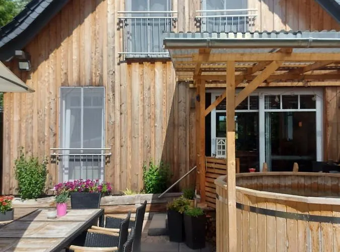 Gemutliches Haus Mit Zuber, Naturnah! ligt op rijafstand van 10 minuten vanaf Historischer Ortskern en nodigt gasten uit om te ontspannen op een terras.
